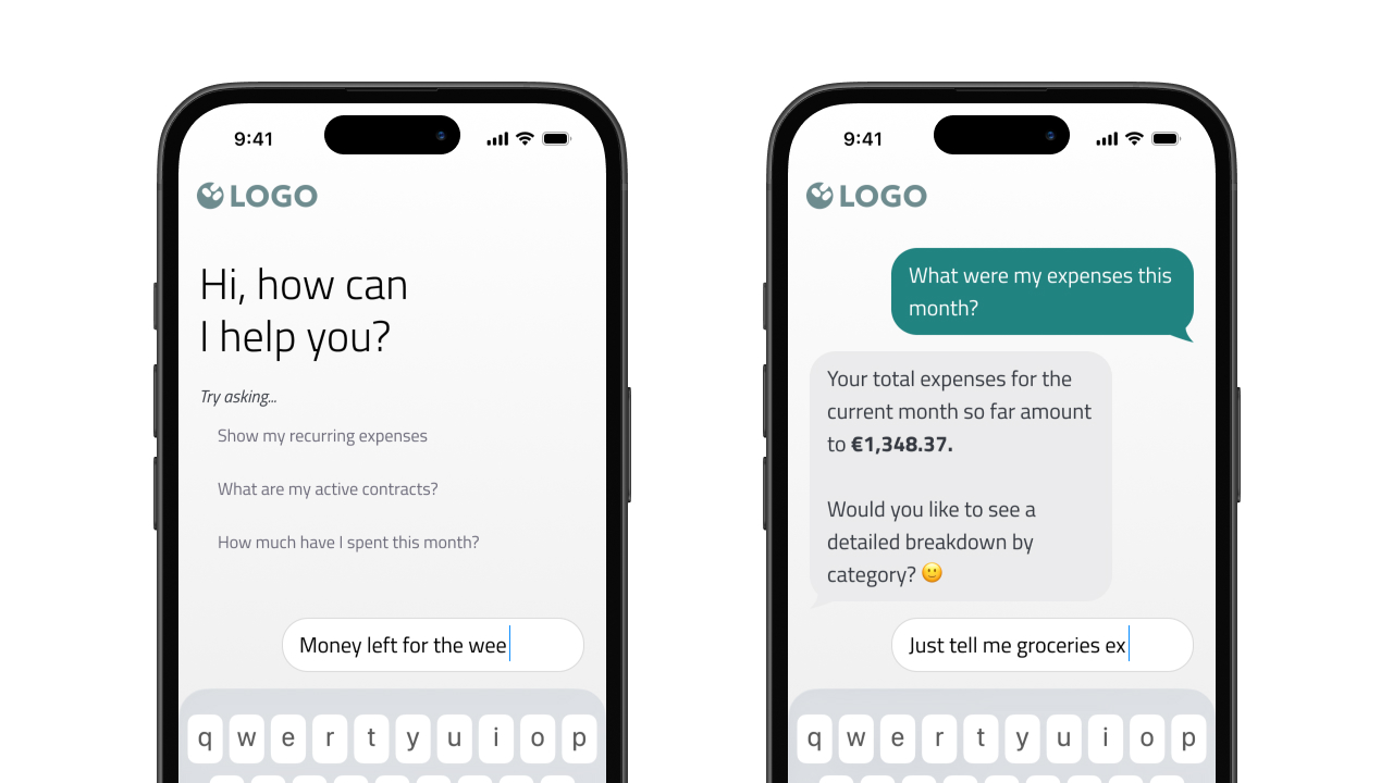 - Data like categorized transactions, contracts, cashflow analyses, or plain account information instantly available to your LLM.